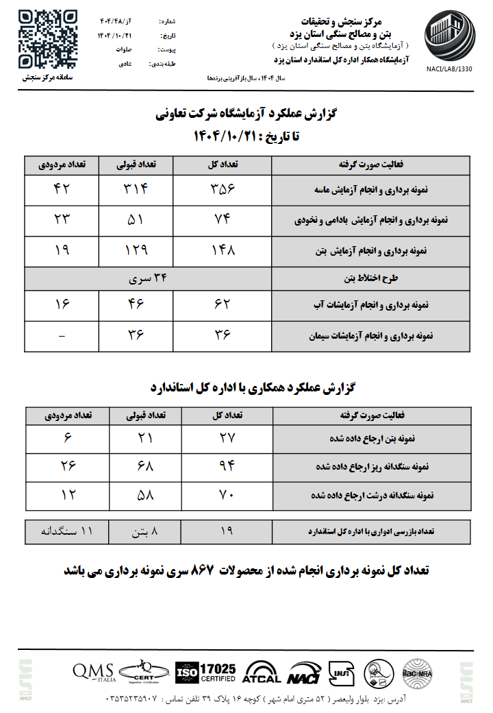 مرکز سنجش و تحقیقات بتن و مصالح سنگی استان یزد