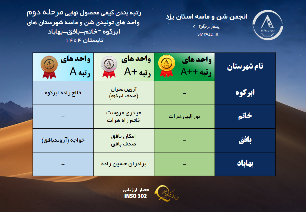 واحد های تولیدی که توانسته اند رتبه A (نشان برنزی) را کسب نمایند :